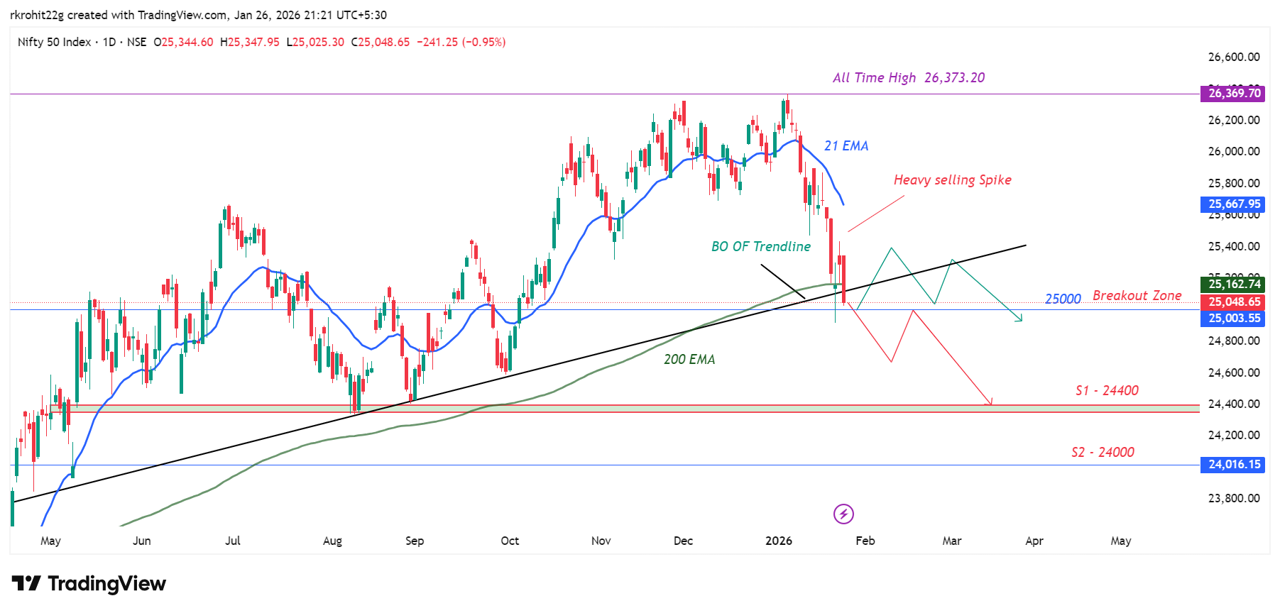 From the all-time high of 26,357, the market has fallen nearly 1,400 points in just 21 days.